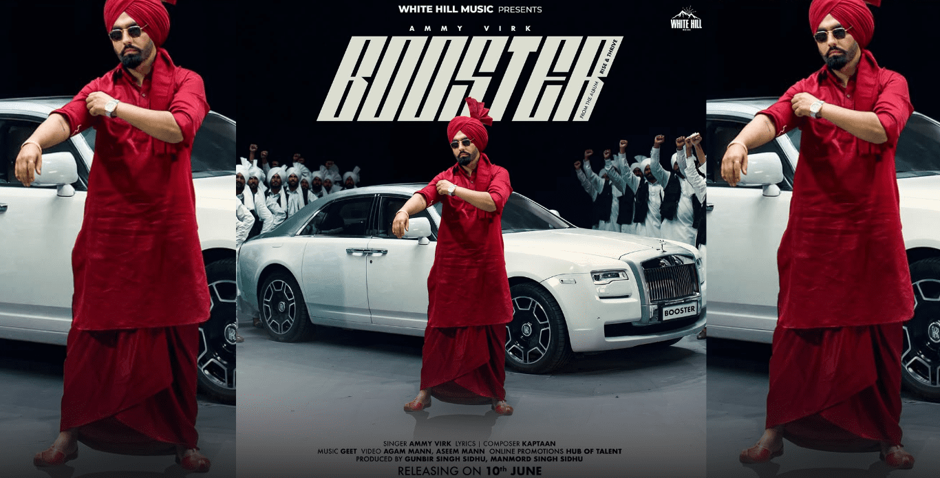 When grit meets grandeur, it creates a storm exactly what Ammy Virk is bringing with his upcoming track “Booster”, set to release on 10th June under the banner of White Hill Music. Styled in a fierce red outfit, standing confidently next to a luxury Rolls Royce, and backed by a troop of energetic men, Ammy Virk is all set to deliver what looks like a high-energy, impactful musical banger.